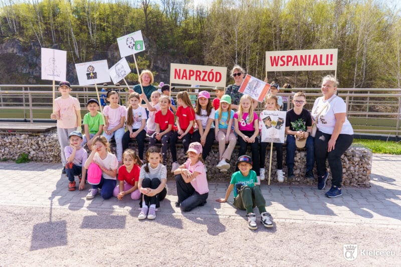 Naprzód, Wspaniali! – tak właśnie brzmiał dziś nasz okrzyk, gdy z literackimi transparentami i postaciami z książek Edmunda Niziurskiego przemaszerowaliśmy ulicami Kielc aż na skwer jego imienia! Było jak za dawnych lat – graliśmy w klasy, w gumę, przeciągaliśmy linę i strzelaliśmy z kapsli. Uczniowie Szkoły Podstawowej nr 32 i Szkoły Podstawowej nr 9 pokazali, że dobra zabawa nie potrzebuje ekranów – wystarczy odrobina wyobraźni i literacki duch przygody!