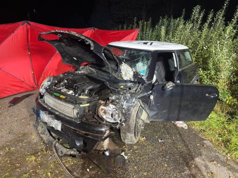 Według wstępnych ustaleń, mężczyzna kierujący samochodem marki Mini Cooper poruszał się prostym odcinkiem drogi, gdy nagle auto zjechało z trasy i z dużą siłą uderzyło w przydrożne drzewo. Siła zderzenia była tak duża, że przód pojazdu został niemal całkowicie zniszczony.