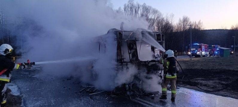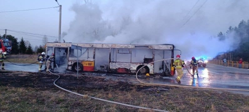 Na miejsce zadysponowano sześć zastępów straży pożarnej – trzy z jednostki w Kielcach oraz ochotnicze straże pożarne z Mąchocic, Ciekot i Woli Kopcowej. Gdy strażacy przybyli na miejsce, autobus był już całkowicie zajęty przez ogień. Akcja gaśnicza pozwoliła na szybkie opanowanie pożaru i zabezpieczenie terenu.