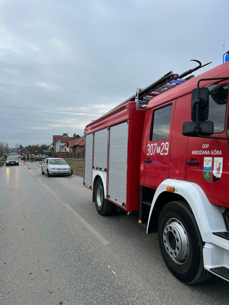W czwartek rano, 13 lutego, na ulicy Tumlińskiej w Miedzianej Górze doszło do zderzenia dwóch samochodów osobowych. W wyniku wypadku do szpitala trafiły dwie osoby – kobieta kierująca seatem oraz podróżujące z nią trzyletnie dziecko.