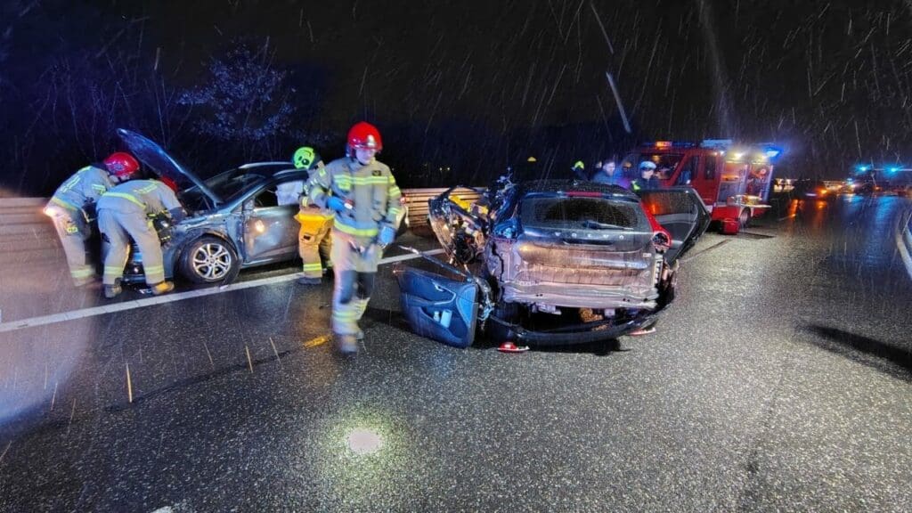 W piątkowy wieczór na drodze krajowej nr 74 w Ćmińsku, w pobliżu Toru Kielce, doszło do poważnego wypadku z udziałem trzech pojazdów – dwóch samochodów osobowych i ciężarówki. W wyniku zdarzenia cztery osoby odniosły obrażenia, a ruch na trasie został całkowicie wstrzymany w obu kierunkach.
