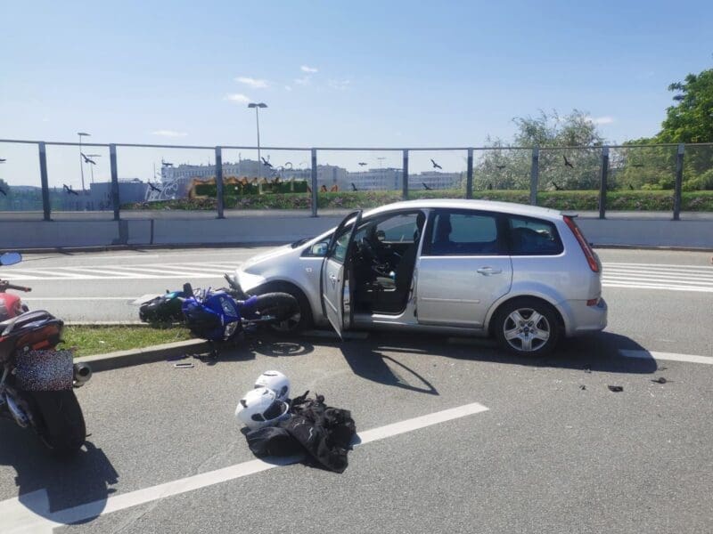 Do groźnie wyglądającego zdarzenia doszło w sobotnie popołudnie w pobliżu Galerii Echo w Kielcach. Na skrzyżowaniu w rejonie centrum handlowego samochód osobowy uderzył w motocykl, którym kierowała młoda kobieta.