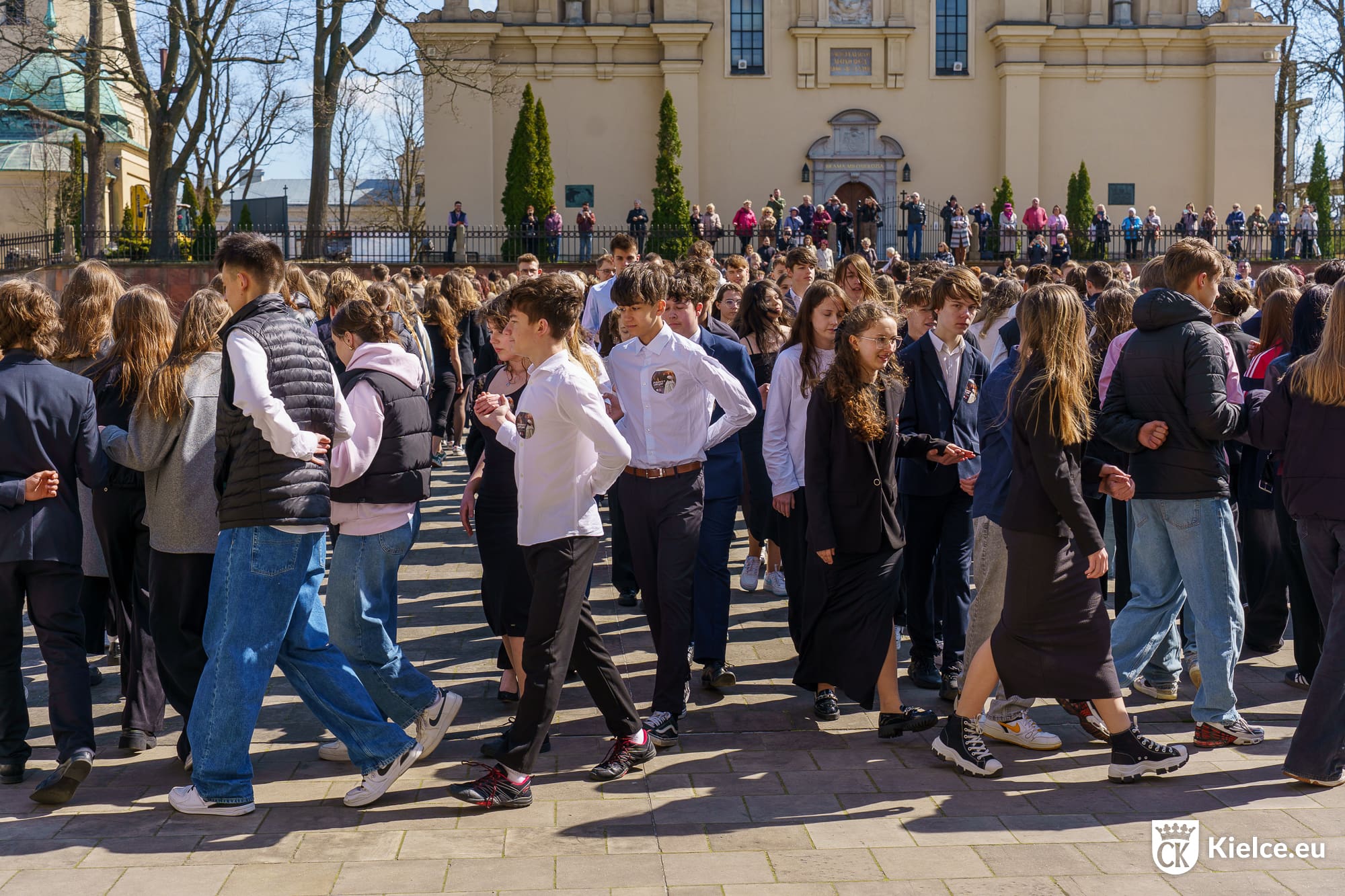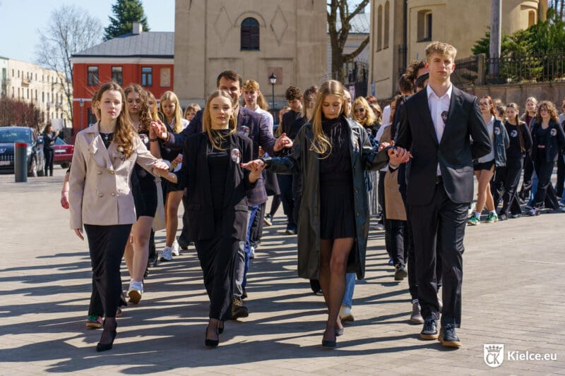 Świętowanie trzech wieków szkoły wymaga widowiskowego wydarzenia. I tak właśnie było w środowe południe na Placu Zamkowym. Uczniowie, nauczyciele, absolwenci i przyjaciele kieleckiego „Żeroma” zatańczyli wspólnie poloneza.